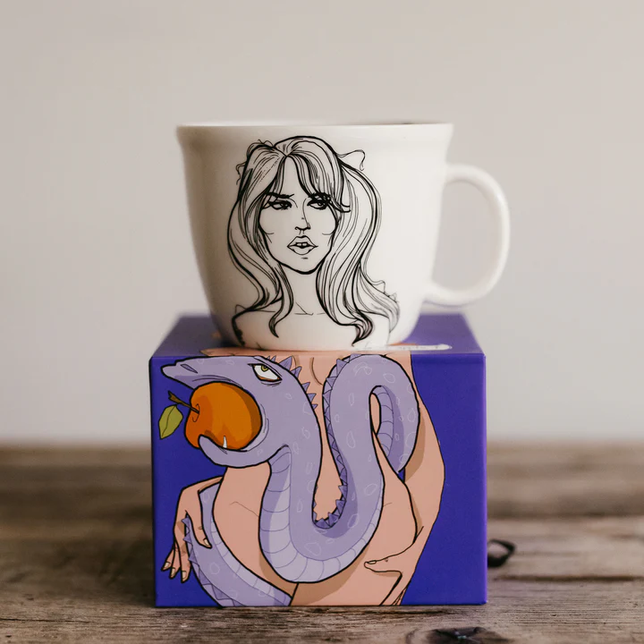 De Eva The Original Sinner mok van PolonaPolona is een porseleinen koffiemok van 350ml met een humoristische en artistieke illustratie van Eva, de eerste zondares uit het paradijs. Deze mok combineert klassieke symboliek met moderne ironie, typisch voor de unieke stijl van PolonaPolona.