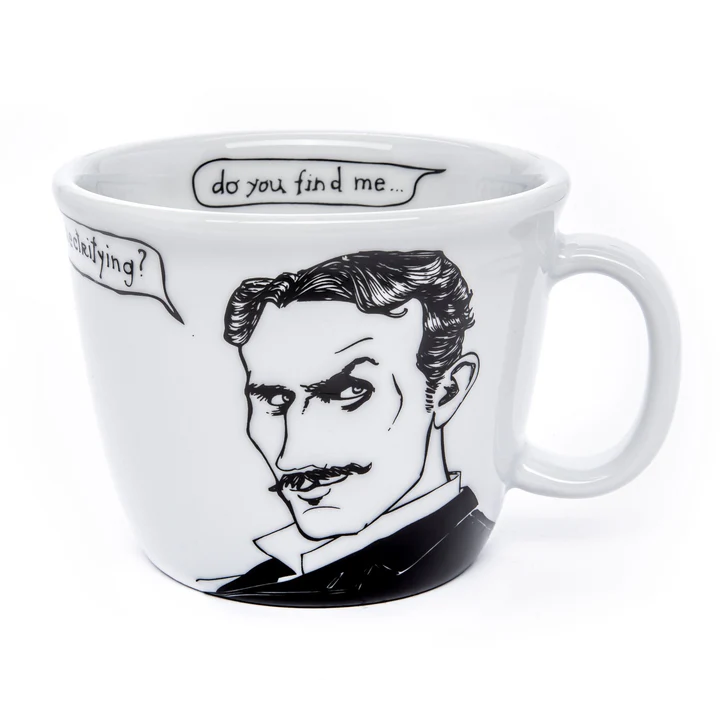 Bestel nu de Nikola Tesla Child of Storm mok en geniet van je koffie met een vonk van genialiteit en elektrische charme.