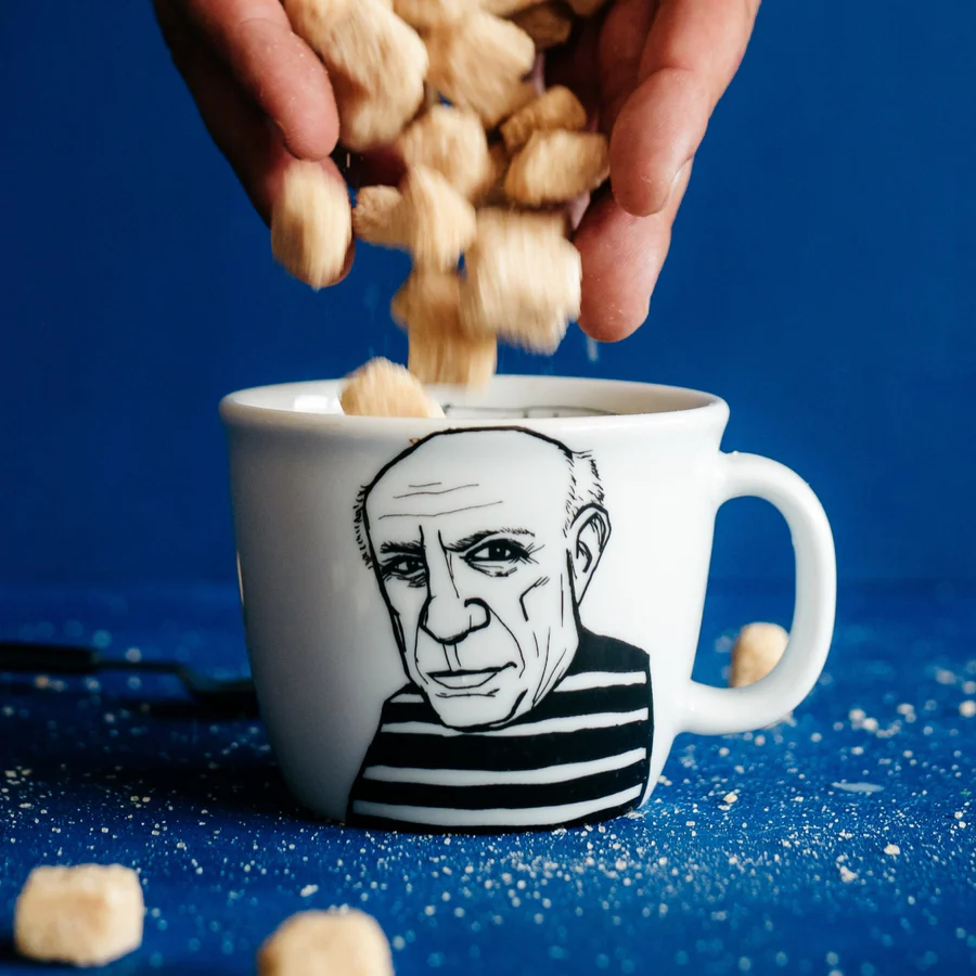 De Pablo Picasso The Celebrated Cubist mok van PolonaPolona is een porseleinen koffiemok van 350ml met een creatieve en humoristische illustratie van kunstenaar Pablo Picasso. De mok speelt op speelse wijze met zijn kubistische stijl en excentrieke persoonlijkheid — precies zoals PolonaPolona bekendstaat: kunstzinnig, eigenzinnig en met een knipoog.