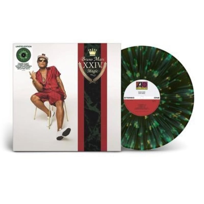 Bruno Mars’ iconische album 24k Magic verschijnt op 5 april 2024 in een schitterende nieuwe editie. Deze 1-LP release komt in een luxe Gatefold Hoes verpakking, compleet met een exclusieve insert, en wordt geleverd op een opvallend splatter vinyl in zwart, geel en groen. Met hits zoals “Perm”, “Versace on the Floor”, “Calling All My Lovelies” en “Too Good to Say Goodbye” straalt dit album de magie van Bruno Mars volledig uit. Mis deze unieke uitvoering niet en voeg dit collector’s item toe aan je collectie!